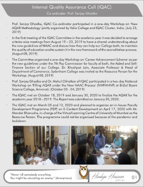· The IQAC met on October 18, 2019 and January 30, 2020 to nalize the AQAR for the