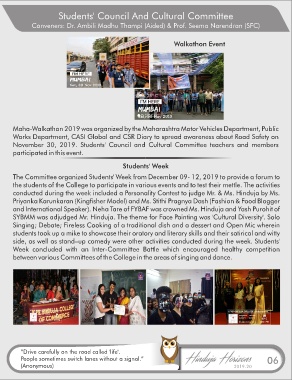 The Committee organized Students' Week from December 09- 12, 2019 to provide a forum to