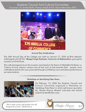 The 46th Annual Day of the College was held on January 17, 2020 at Birla Matushri