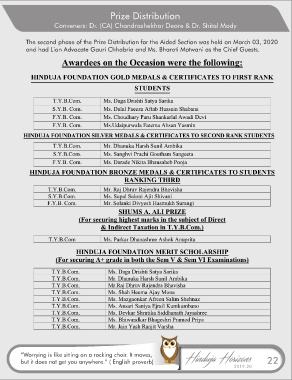 The second phase of the Prize Distribution for the Aided Section was held on March 03, 2020