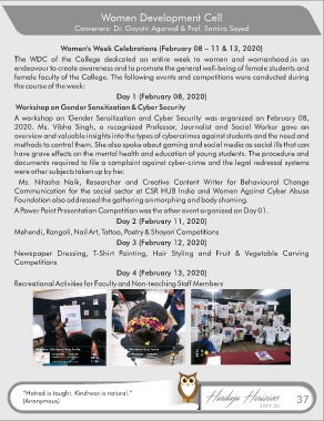female faculty of the College. The following events and competitions were conducted during