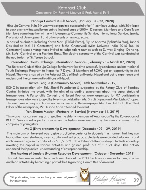 The Rotaract Club of Hinduja College for the very rst time successfully conducted an International