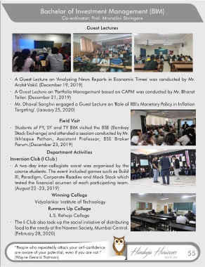 · Mr. Dhaval Sanghvi engaged a Guest Lecture on 'Role of RBI's Monetary Policy in Ination