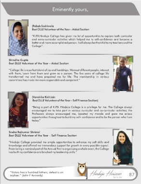 “Being a part of K.P.B. Hinduja College is a privilege for me. The College always