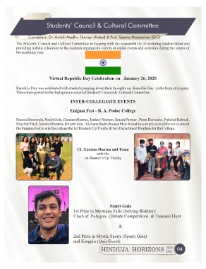 the Enigma Fest to win the college the 1st Runners Up Trophy & two Department Trophies for the College.