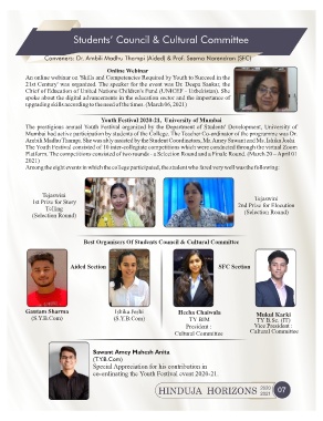 The Youth Festival consisted of 10 inter-collegiate competitions which were conducted through the virtual Zoom