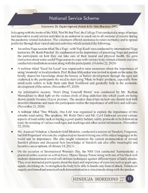 In keeping with the motto of the NSS, 'Not Me but You', the College Unit conducted a range of unique