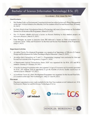 • A Departmental festival 'Technolution Series 2020' was organised for the B.Sc. (IT) and BCA