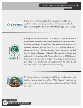 The Research Cell under the aegis of the IQAC and in collaboration with