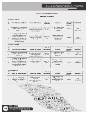 Research Papers Published / Presented 2021 - 2022 02 HINDUJA HORIZONS