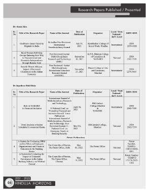 Research Papers Published / Presented 2021 - 2022 04 HINDUJA HORIZONS