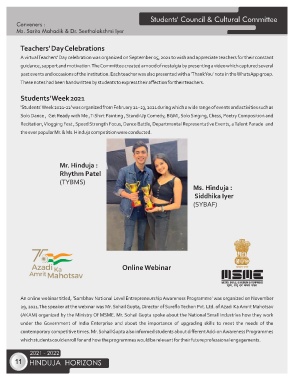 'Students' Week 2021-22' was organized from February 21–23, 2021 during which a wide range of events and activities such as
