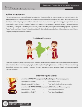 The Cultural Committee organized 'Kabira - Ek Safar 2021' from December 02, 2021 to January 07, 2022. This was the first