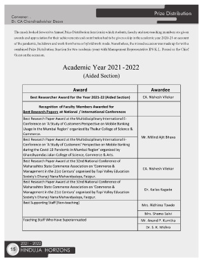 awards and appreciation for their achievements and contribution had to be given a skip in the academic year 2020-21 on account