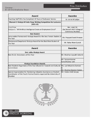 Prize Distribution Convener: . Dr. CA Chandrashekhar Deore 2021 - 2022 16 HINDUJA HORIZONS