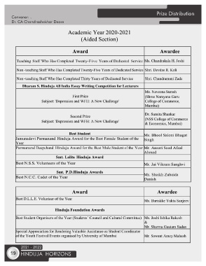 Prize Distribution Convener: . Dr. CA Chandrashekhar Deore 2021 - 2022 19 HINDUJA HORIZONS
