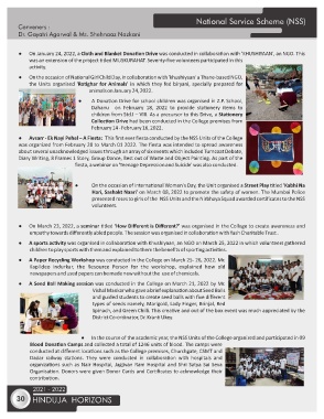 ● In the course of the academic year, the NSS Units of the College organized and par cipated in 09