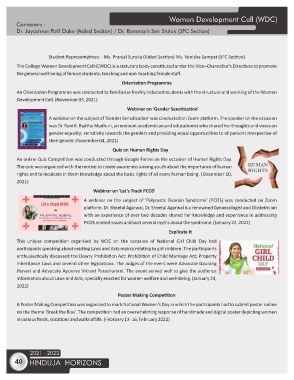 An Orienta on Programme was conducted to familiarize freshly inducted students with the structure and working of the Women