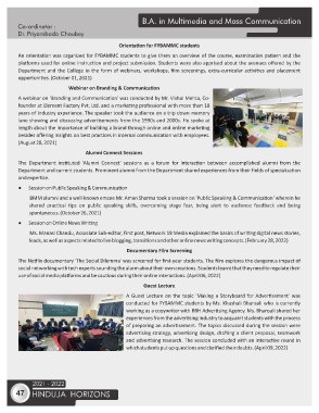 Department and the College in the form of webinars, workshops, film screenings, extra-curricular ac vi es and placement