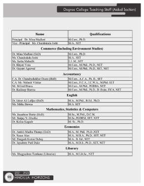 Degree College Teaching Staff (Aided Section) 2021 - 2022 59 HINDUJA HORIZONS