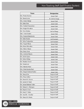 Non-Teaching Staff (Self-Finance Section) 2021 - 2022 64 HINDUJA HORIZONS