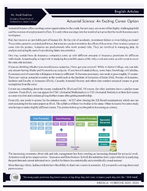 and the avenues of employment it offers. It is only when one steps into the world of actuaries that the world becomes one's