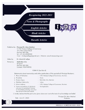 1. Place of Publication : K.P.B. Hinduja College of Commerce, Mumbai.