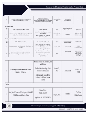 Research Papers Published / Presented 04 “You are what you do, not what you say you’ll do.” (Carl Jung) HINDUJA HORIZONS 2022 -2023