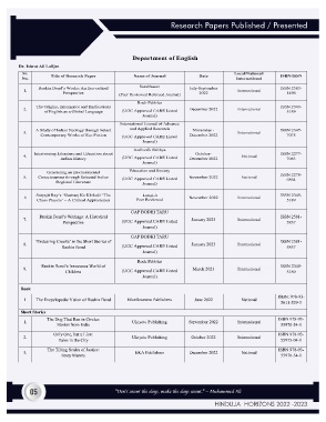 Research Papers Published / Presented 05 "Don't count the days, make the days count." – Muhammed Ali HINDUJA HORIZONS 2022 -2023