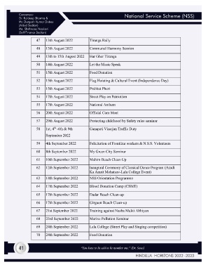 Conveners: National Service Scheme (NSS) Dr. Kuldeep Sharma & Mr. Durgesh Kumar Dubey (Aided Section) Ms. Shehnaaz Nazkani (Self Finance Section) 41 “You have to be odd to be number one.” (Dr. Seuss) HINDUJA HORIZONS 2022 -2023