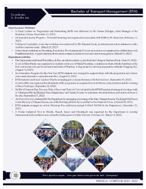 • An Orientation Program for the First Year BTM students was arranged to acquaint them with the programme and various