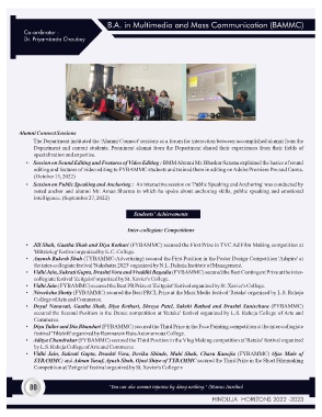 • Vidhi Jain ( FYBAMMC) secured the Best PR Prize at 'Zeitgeist' festival organized by St. Xavier's College.