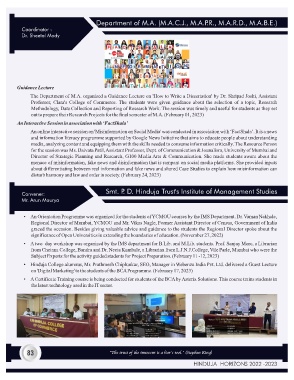 The Department of M.A. organised a Guidance Lecture on 'How to Write a Dissertation' by Dr. Shripad Joshi, Assistant